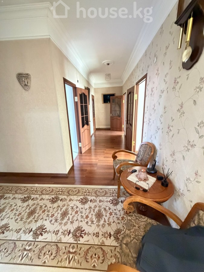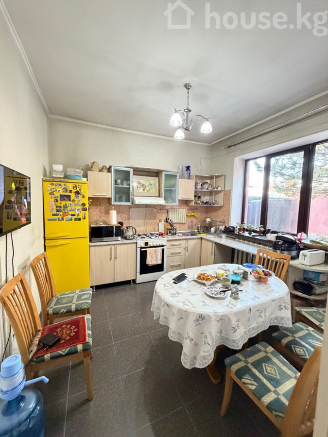Продаётся уютный 2-этажный дом мансардного типа в тихом и зелёном районе Тюменская / Тоголок-Молдо (ниже пр. Жибек-Жолу). Хорошие соседи, отличная локация для комфортной семейной жизни. Основные параметры: Участок: 5 соток Площадь дома: 152 м² Этажность: 2 этажа, мансардный тип, дом утеплён Планировка: 1 этаж: две спальни, просторный зал, кухня, 2 санузла 2 этаж: большой зал, одна спальня Потолки: 3,8 м Площадь построек: более 50 м2 Гараж: на 2 машины + погреб Коммуникации: Центральная канализация Своя скважина, водопровод + насосы для регулировки давления воды Газ магистральный Отопление комбинированное: газ / уголь Баня: Бассейн 3,5 × 2 м Фильтры очистки воды Парилка на 6 человек Тёплый пол Санузел Летник: Летняя кухня Комната для приёма гостей и отдыха Камин Двор и участок: Участок 5 соток Красная книга Кирпичный забор Очень ухоженный, зелёный двор Много деревьев и декоративных растений — создаёт атмосферу уюта и приватности Локация и инфраструктура Дом находится в центре города, при этом в тихом и спокойном районе 3 парка и скверы в 5 минутах (Панфилова, Дубовый, Держинка) Рядом супермаркеты, базар, аптеки, салоны красоты В пешей доступности школы и детские сады Цена: 299,000$