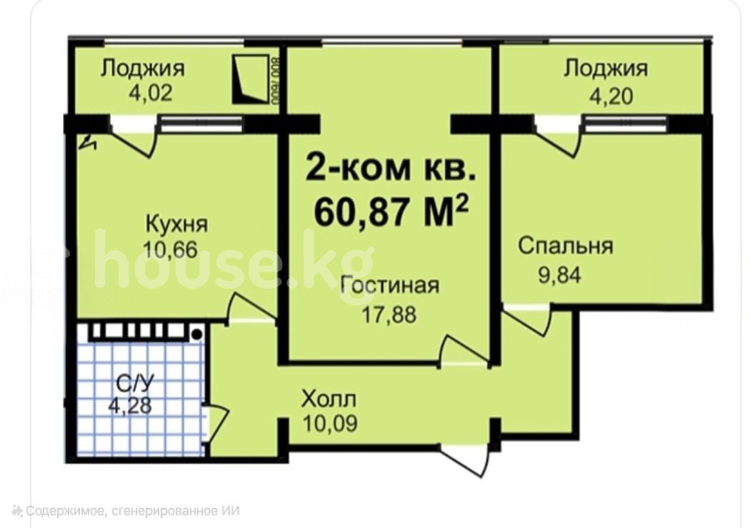 2-бөлм. бат., 61 м2