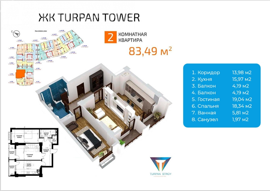 🔑 Продаю ПСО 2-комнатную квартиру — 83м², 7/18 этаж, премиум класс, 114.000$ ЖК «Turpan Tower» от надёжного застройщика Turpan Строй 💎 Выгодное вложение! Последняя 2-комнатная квартира в комплексе После сдачи ПСО цена вырастет на +17% 📈 📍 Южная Магистраль / Советская 📞 Звоните: 0755 58 19 99 — Камал 🏠 Характеристики: * Площадь — 83,49 м² * Этаж — 7 из 18 * Отопление — газовое * Центральные коммуникации * Раздельный санузел * Алюминиевые окна с видом на север 🏢 Преимущества комплекса: * Закрытая охраняемая территория * Видеонаблюдение 24/7 * Отапливаемый подземный паркинг + гостевая парковка * Современная детская площадка ⠀ 🌳 Рядом всё для жизни и отдыха: Парк Победы и Азербайджанский парк — прямо под окнами Школы Гениум и Газпром, детские сады, парк Байтик, супермаркеты, рестораны, кафе 💰 Цена: 114.000$ (торг уместен) 📞 Камал: 0755 58 19 99