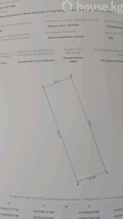 📍 В центре Тамчы. 📐 15 соток (21×69) 🛣 ПЕРВАЯ ЛИНИЯ — вдоль трассы 🌊 До озеро 10-минут ✈️ 10 минут до Аэропорт Тамчы 🔹 Отлично подходит под: кафе / ресторан СТО / автомойку магазин / маркет гостиницу / гостевой дом 💰 Цена: 175 000$ (торг есть) 🔄 Рассмотрю обмен на дом в Бишкек