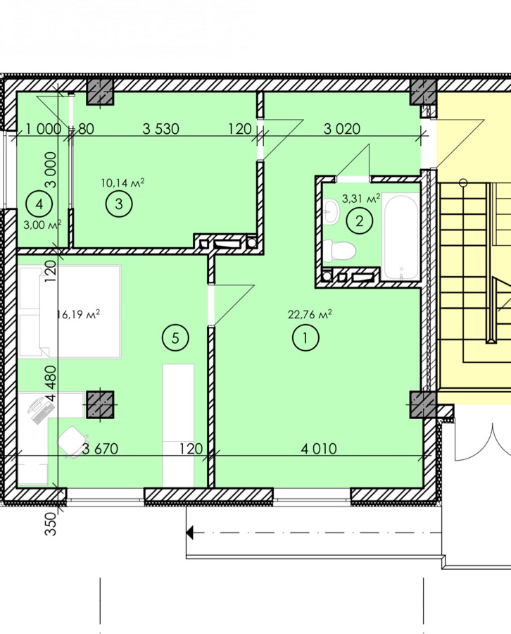 2-room apartment, 55 sq. m