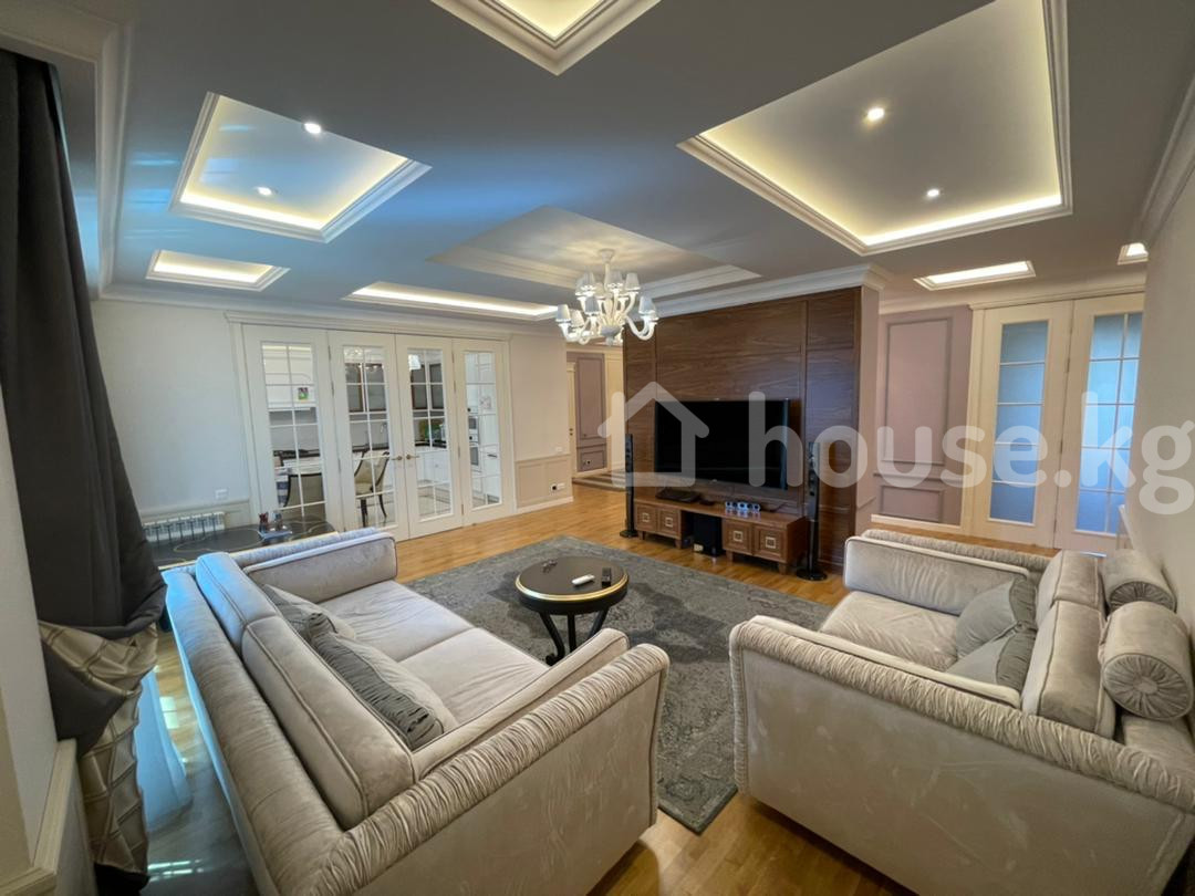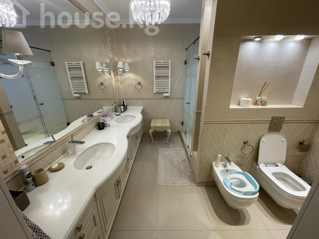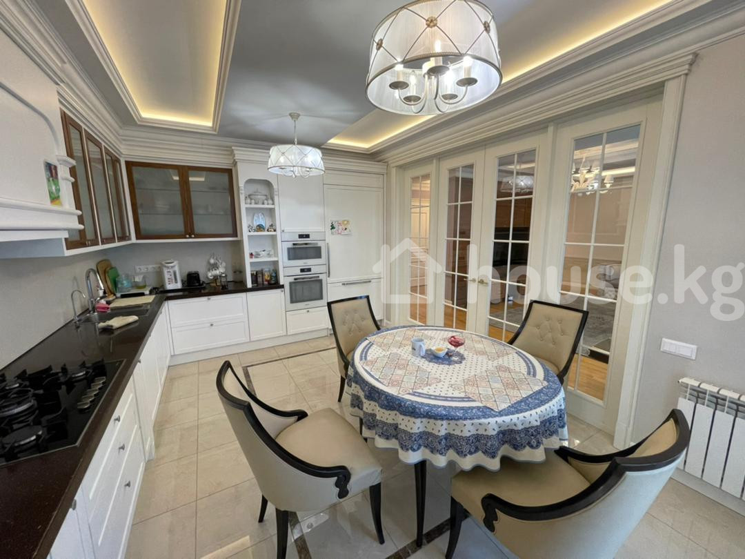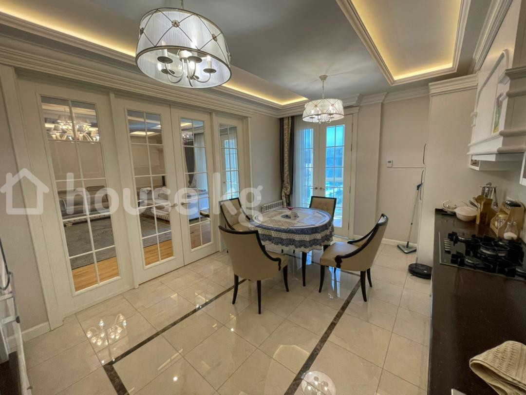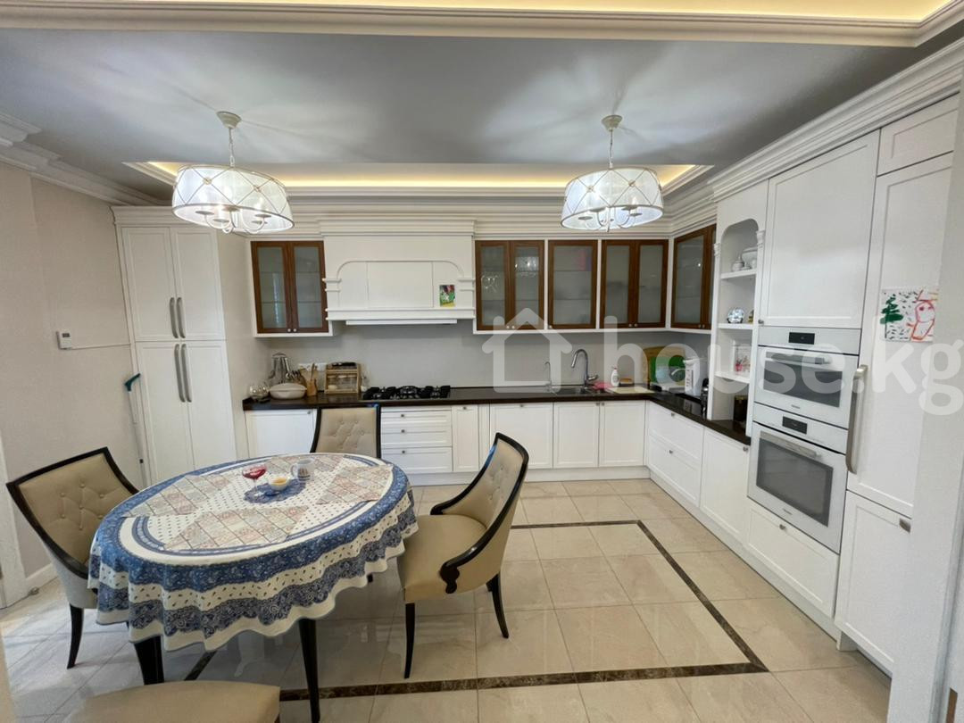 Продается шикарная 5 комнатная квартира в районе парка Ата Тюрк. 211 м2 4 этаж из 4, есть тех этаж. В квартире добротный ремонт, итальянская мебель, техника немецкая Miele. Все остается кроме телевизора. Техника Miele, посудомоечная машина, плита, духовка, холодильник и тд Двери - массив. Мастер спальня со своей гардеробной и сан узлом. 2 сан узла дополнительно. Отопление автономное - свой газовый котел! Очень экономично - за отопительный сезон с ноября по март выходит всего 25 000 сом. Лифт есть. Всего 24 квартиры. Застройщик А групп. 2 подземных паркинга входят в стоимость. Есть договор купли продажи и технический паспорт. Оборудованная кладовка в паркинге 14 м2 входит в стоимость. Есть договор купли продажи и технический паспорт. Документы - Договор купли продажи, технический паспорт. Цена 550 000 долл