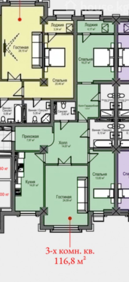 3-бөлм. бат., 117 м2