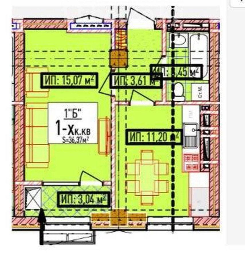 1-бөлм. бат., 37 м2