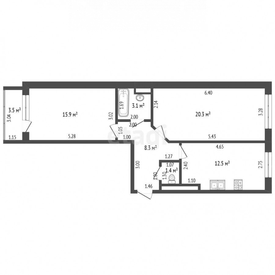 2-бөлм. бат., 62 м2
