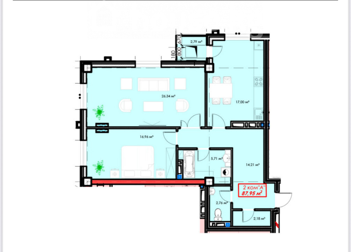 88 м2, ашкана: 20 м2