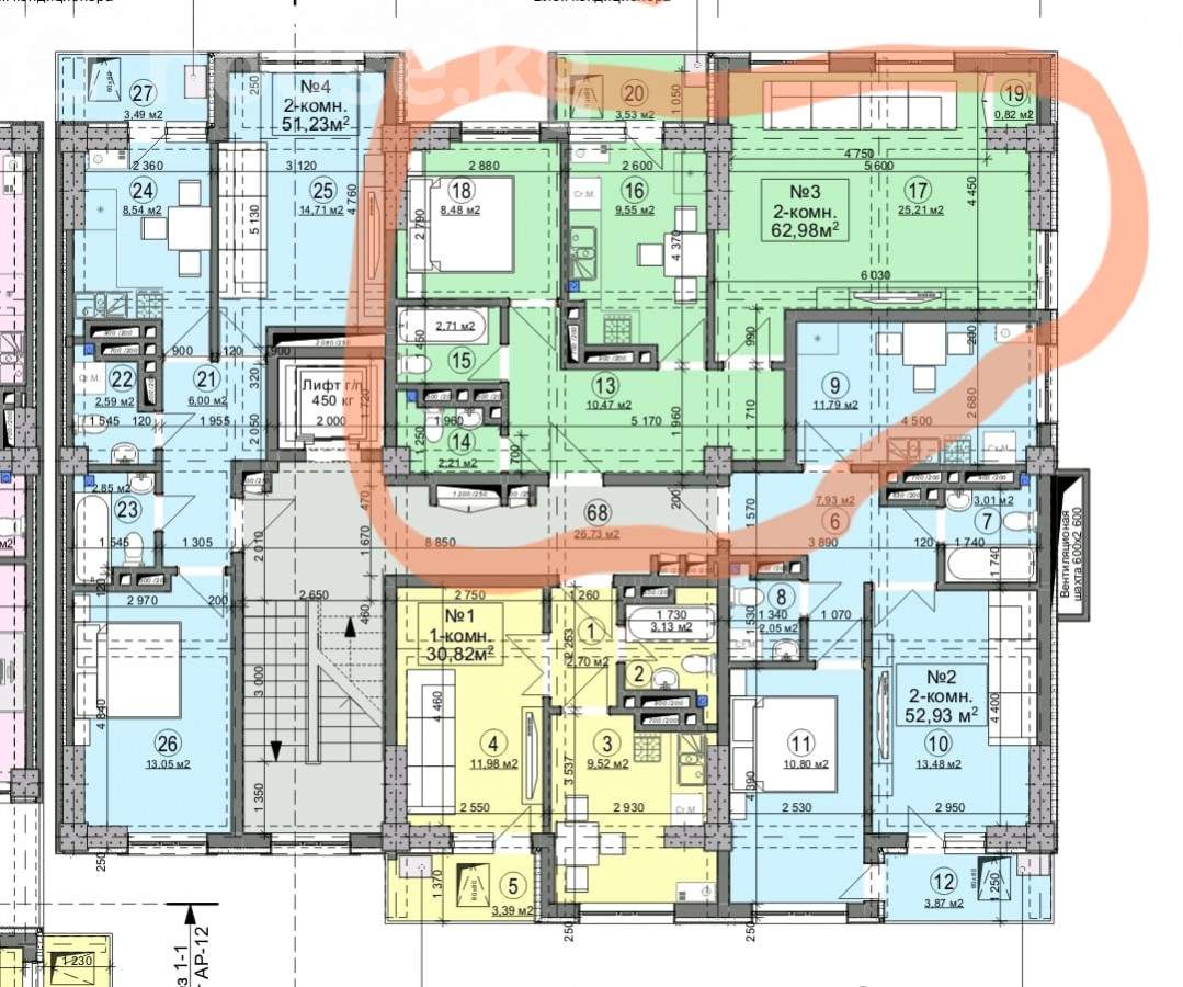 Продаётся 2х комнатная квартира от застройщика «Альфа Строй» Этаж: 9 из 10 Площадь: 63 м² Количество комнат: 2 матертал кирпич Документы: ДДУ, Красная книга Состояние: ПСО конец 2025г Отопление: Газовое ID: 72475