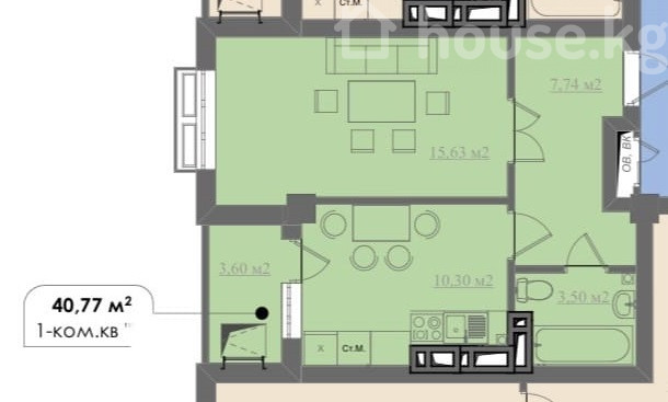 1-бөлм. бат., 40.77 м2