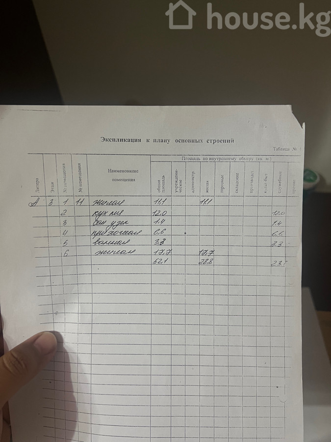 52 м2, турак жай: 29 м2, ашкана: 11 м2
