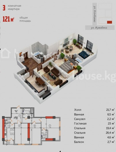 3-бөлм. бат., 121 м2