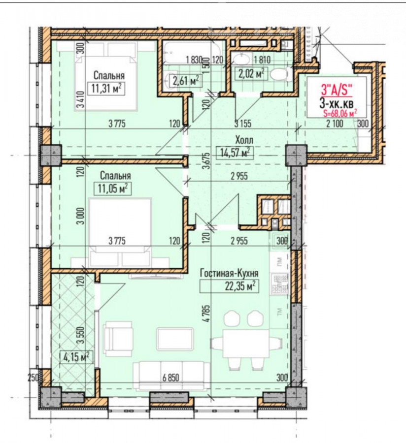 68 м2