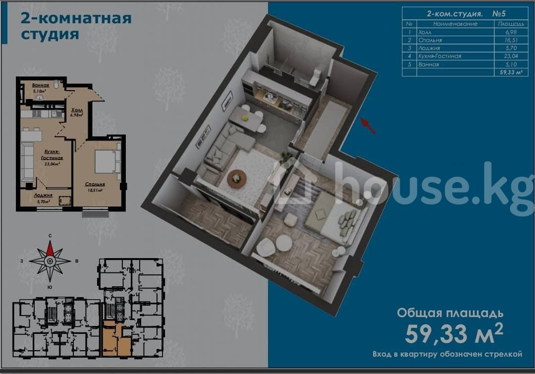 2-бөлм. бат., 59.33 м2