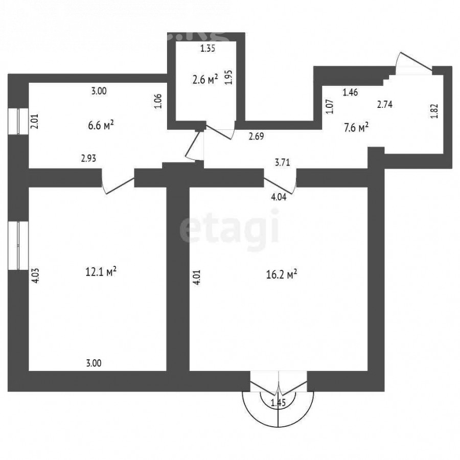 45 м2, турак жай