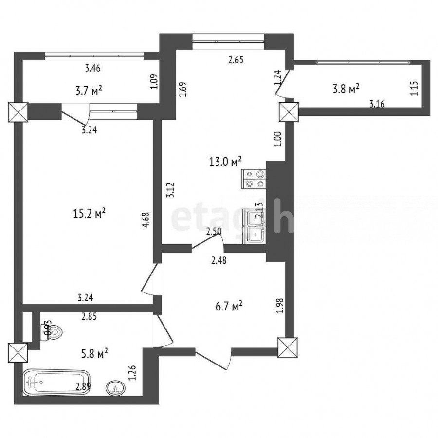 40.7 м2, турак жай: 15.2 м2