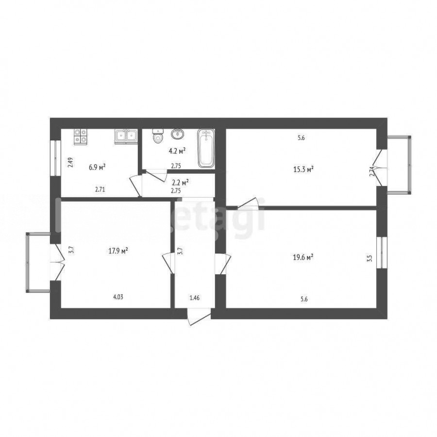 90 м2, турак жай: 53 м2