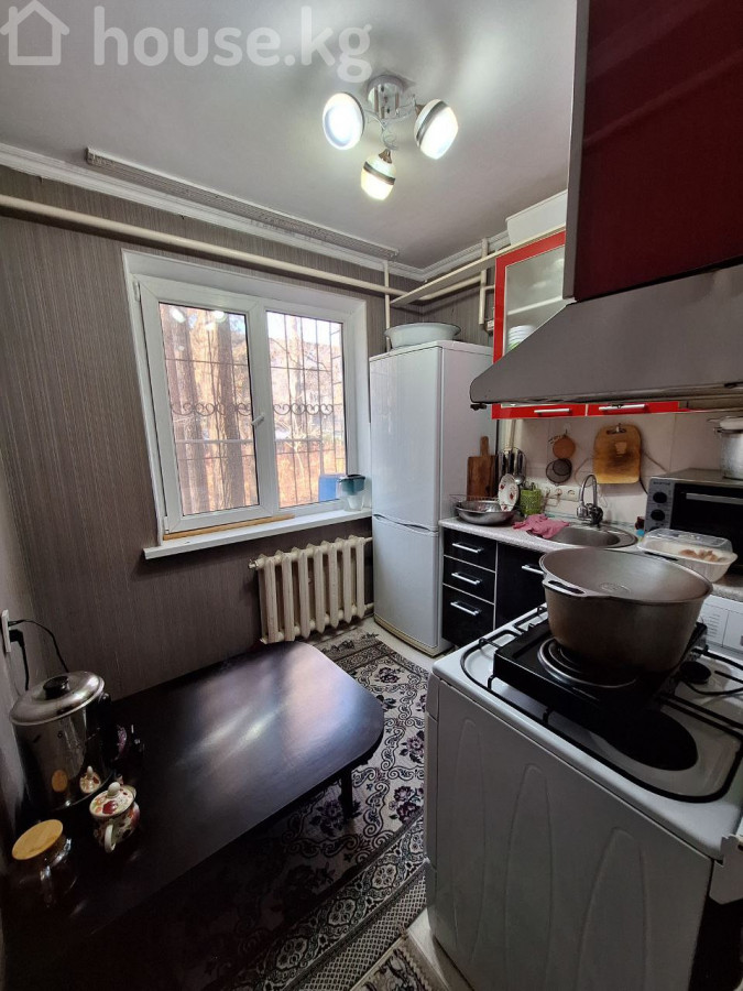 пластик терезе, жакшыртылган, ашкана-студия, жаңы сантехника, кондиционер, буручтуу эмес, өзүнчө бөлмөрөр, ашканадагы эмерек, кладовка, тынч короо