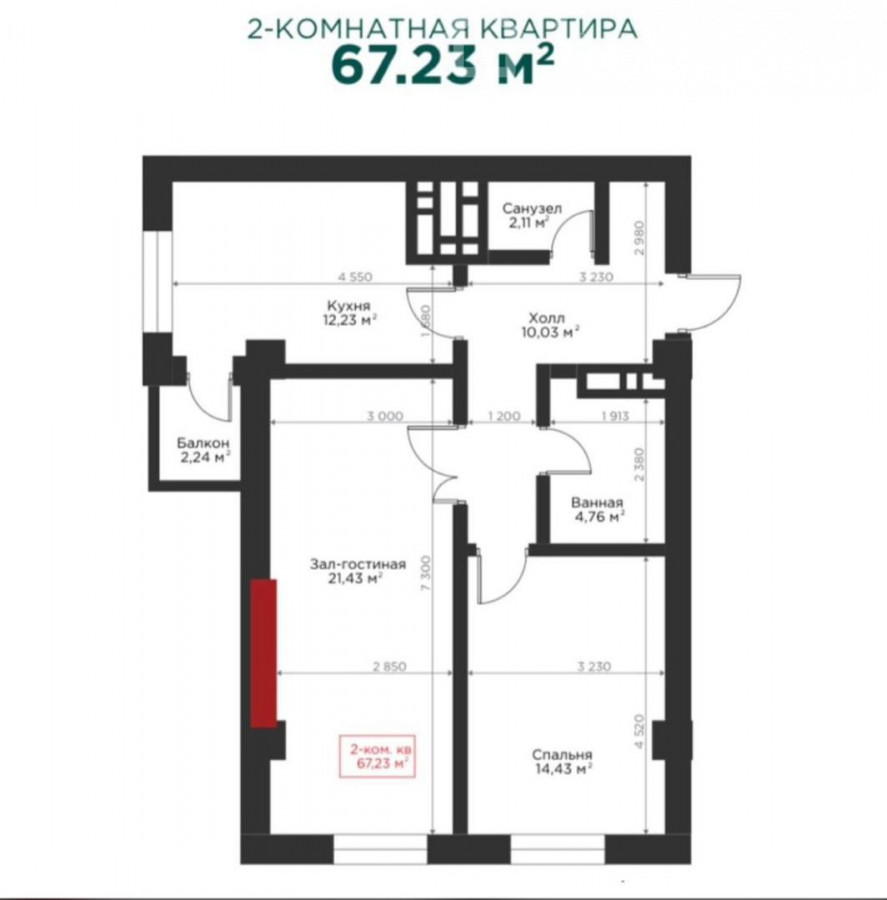 2-бөлм. бат., 67.23 м2