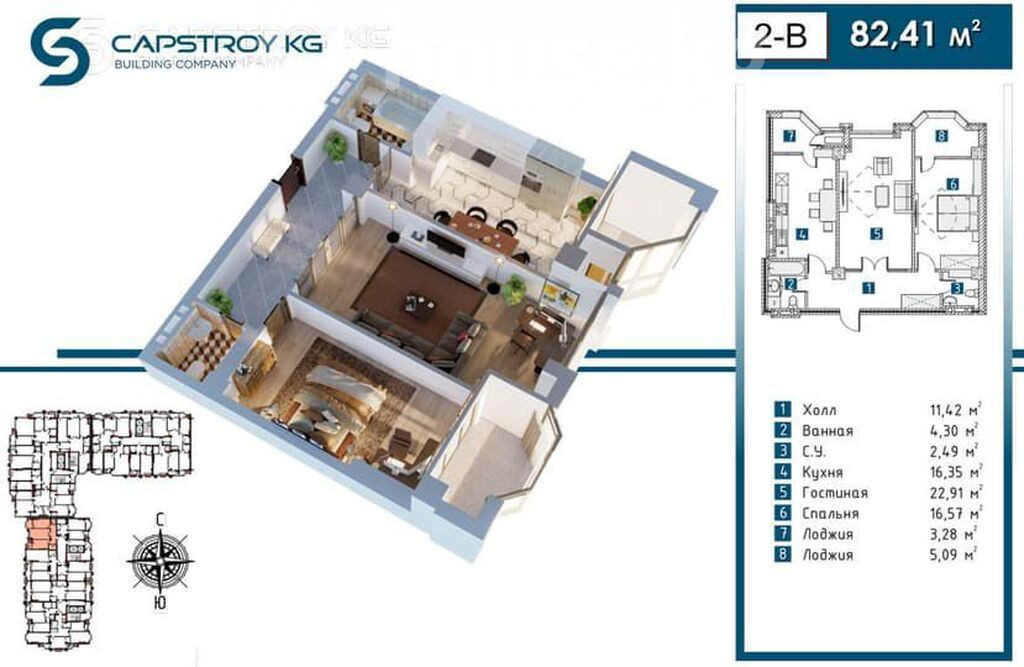 2-бөлм. бат., 82 м2